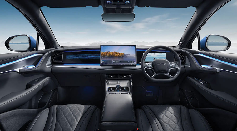Inspired by the dynamic flow and speed of sailboat racing, the BYD SEALION 7's interior embodies a sense of movement, suspension, and volume. This design creates a cohesive and immersive atmosphere, where every element feels like it's floating in harmony with the waves.